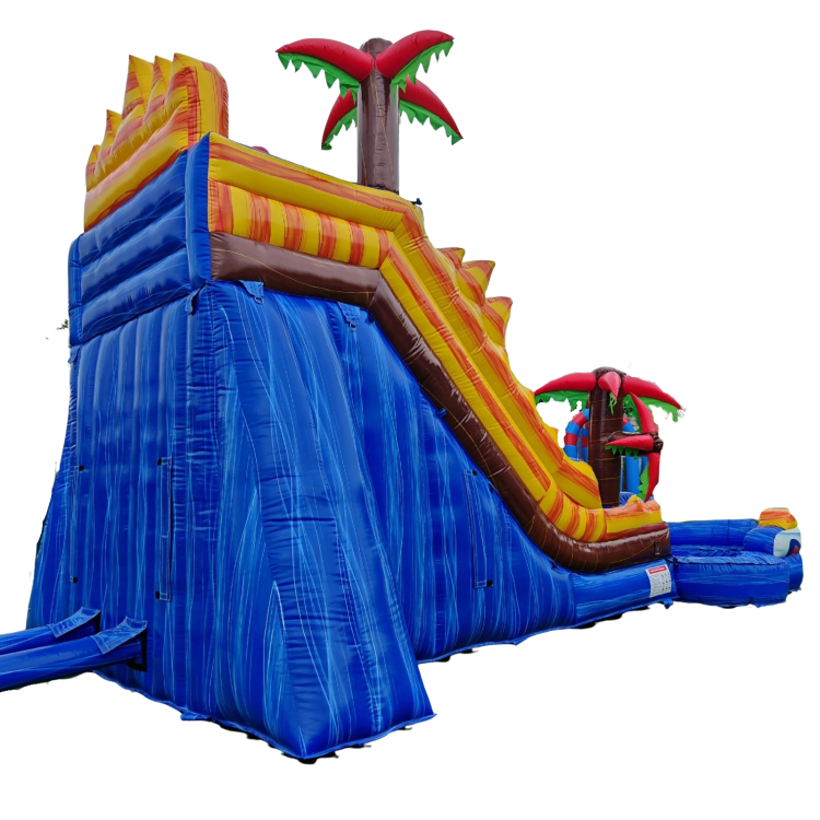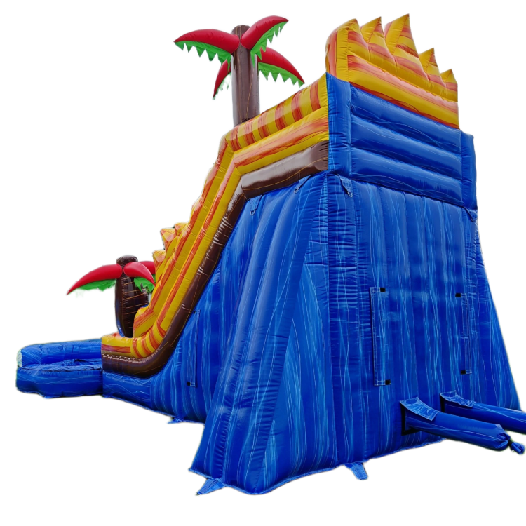 Bring the thrill of a tropical island and the rush of adventure to your next event with the Tropical Inferno Water Slide! This bold, vibrant inflatable features fiery red and orange colors, palm tree accents, and an exhilarating slide that ends in a refreshing splash zoneโperfect for beating the heat on hot days.